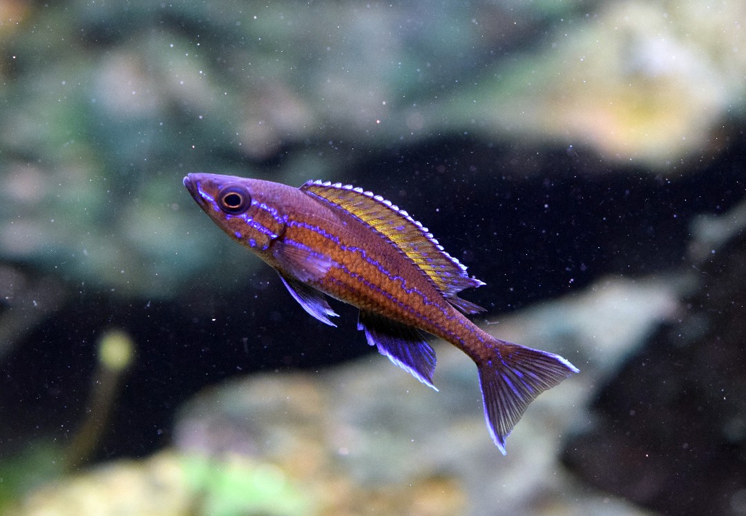 * Les Paracyprichromis évoluent à merveille dans ce bac de 1,50 m de long. Ils occupent tout le bac sans problèmes. Pas de problème de cohabitation avec les autres espèces. Les mâles sont splendides avec leurs couleurs chatoyantes.