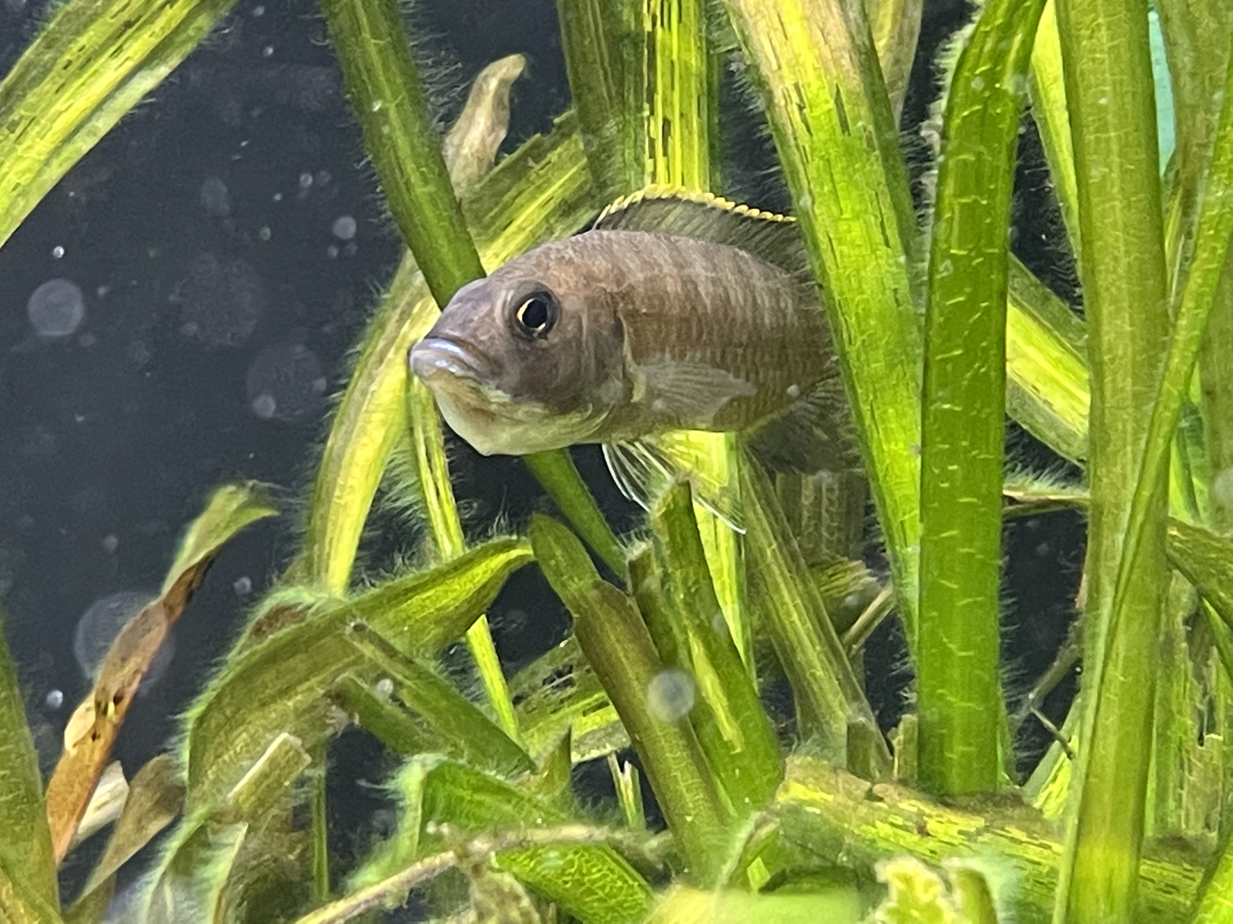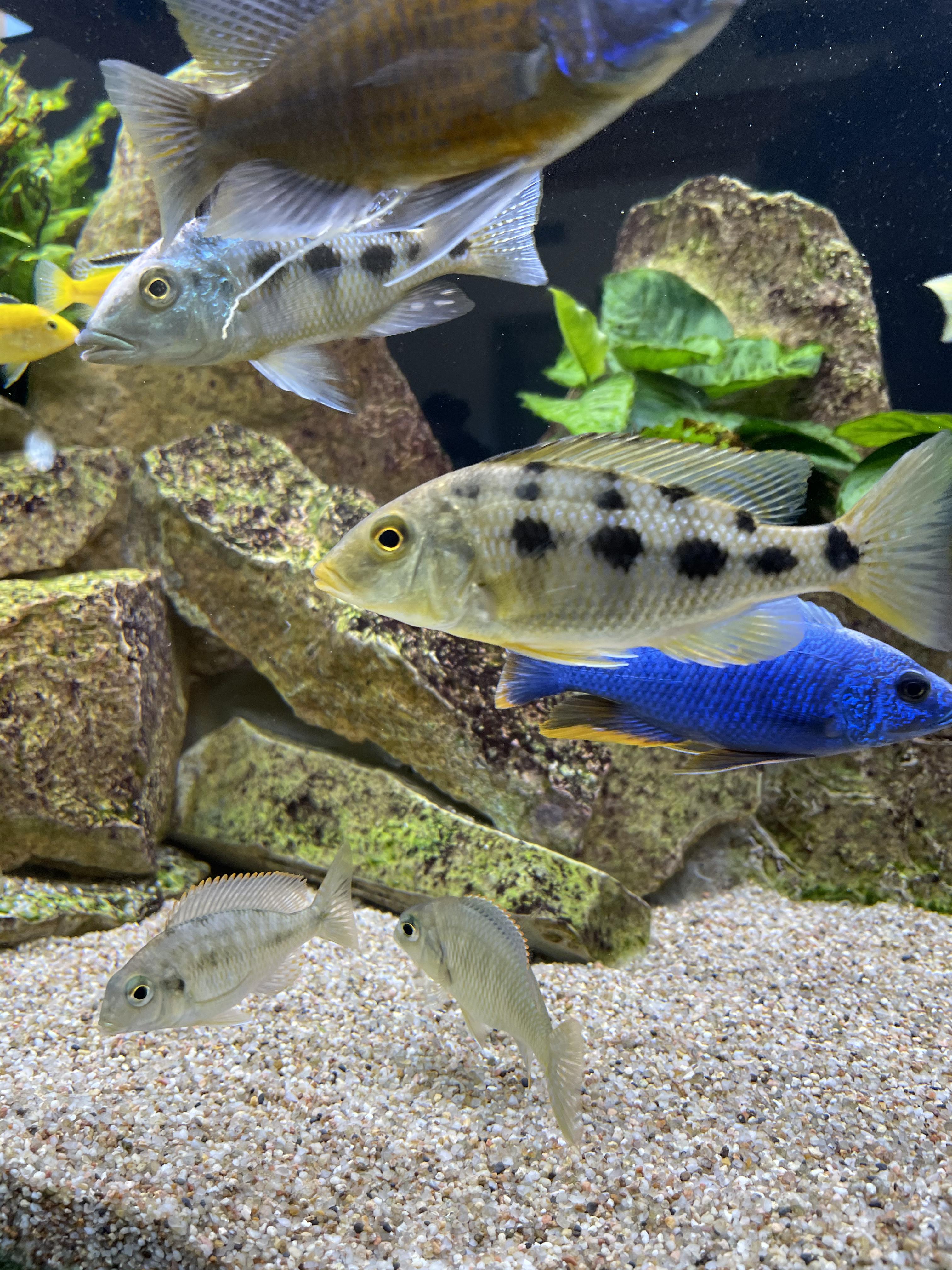 Tout le monde va bien dans le bac. J’ai plein de petits labidochromis.