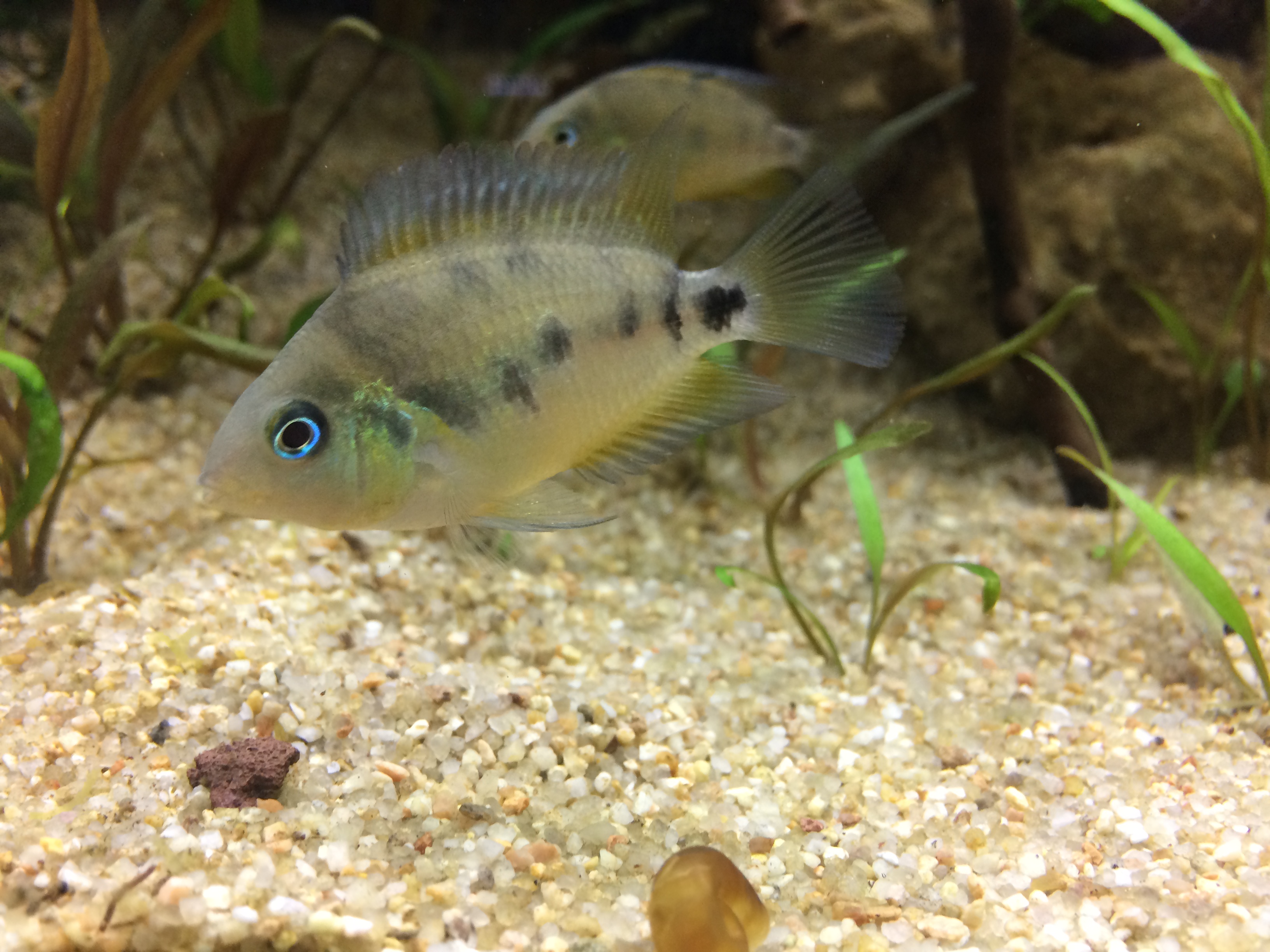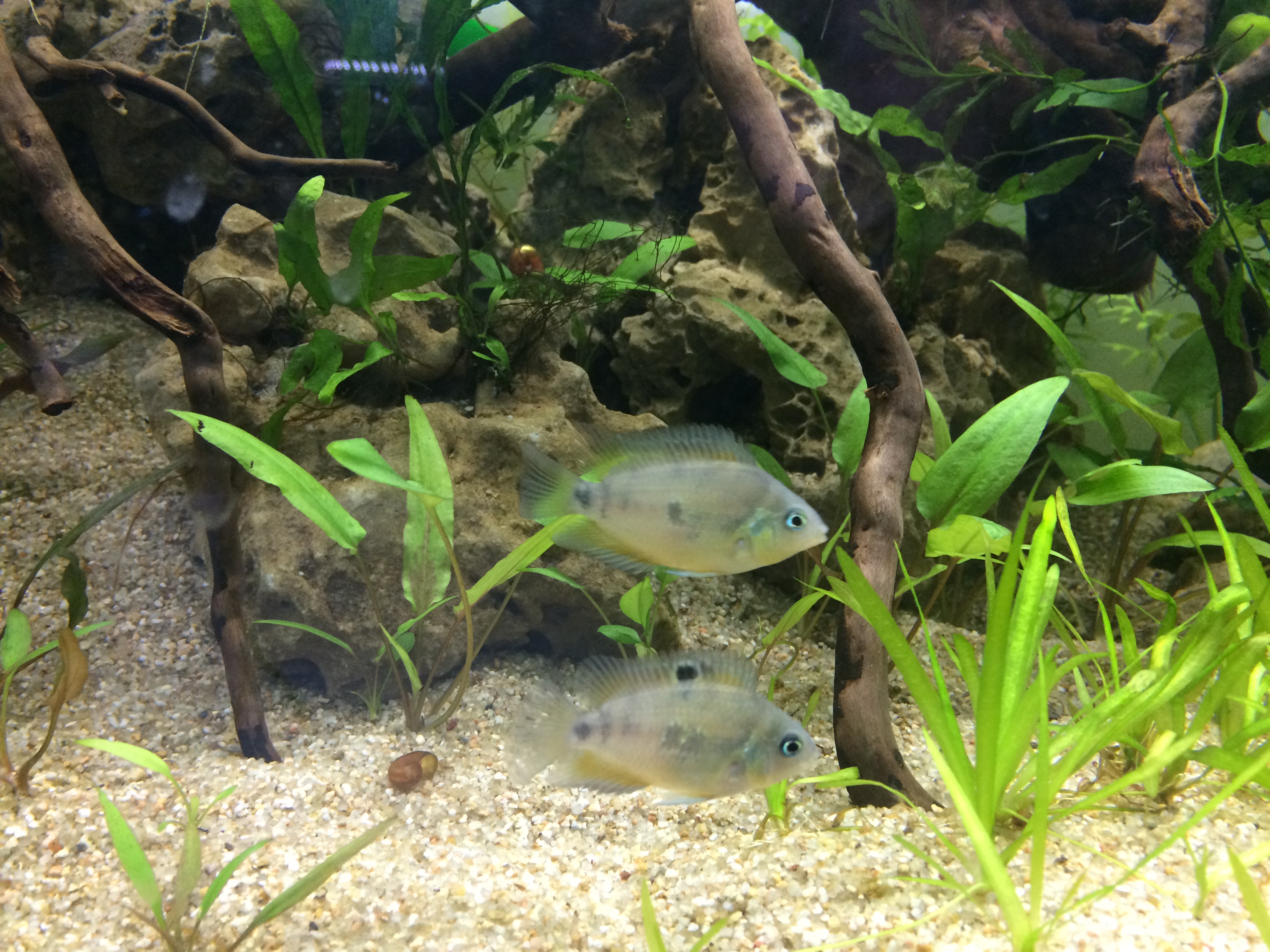 Bonjour, j'ai finalement eu un couple formé assez rapidement, ils arborent de belles couleurs et le mâle a creusé un jolie trou sous un galet au fond de l'aquarium . Par contre les deux autres femelle font les frais du couple. Une en particulier ne s'alimente presque pas alors que je nourris a deux zones différentes . Je pense l'isoler dans un 30l et la vendre quand elle sera moins stressé pour affiner le groupe avec les femelles que le mâle tolère .