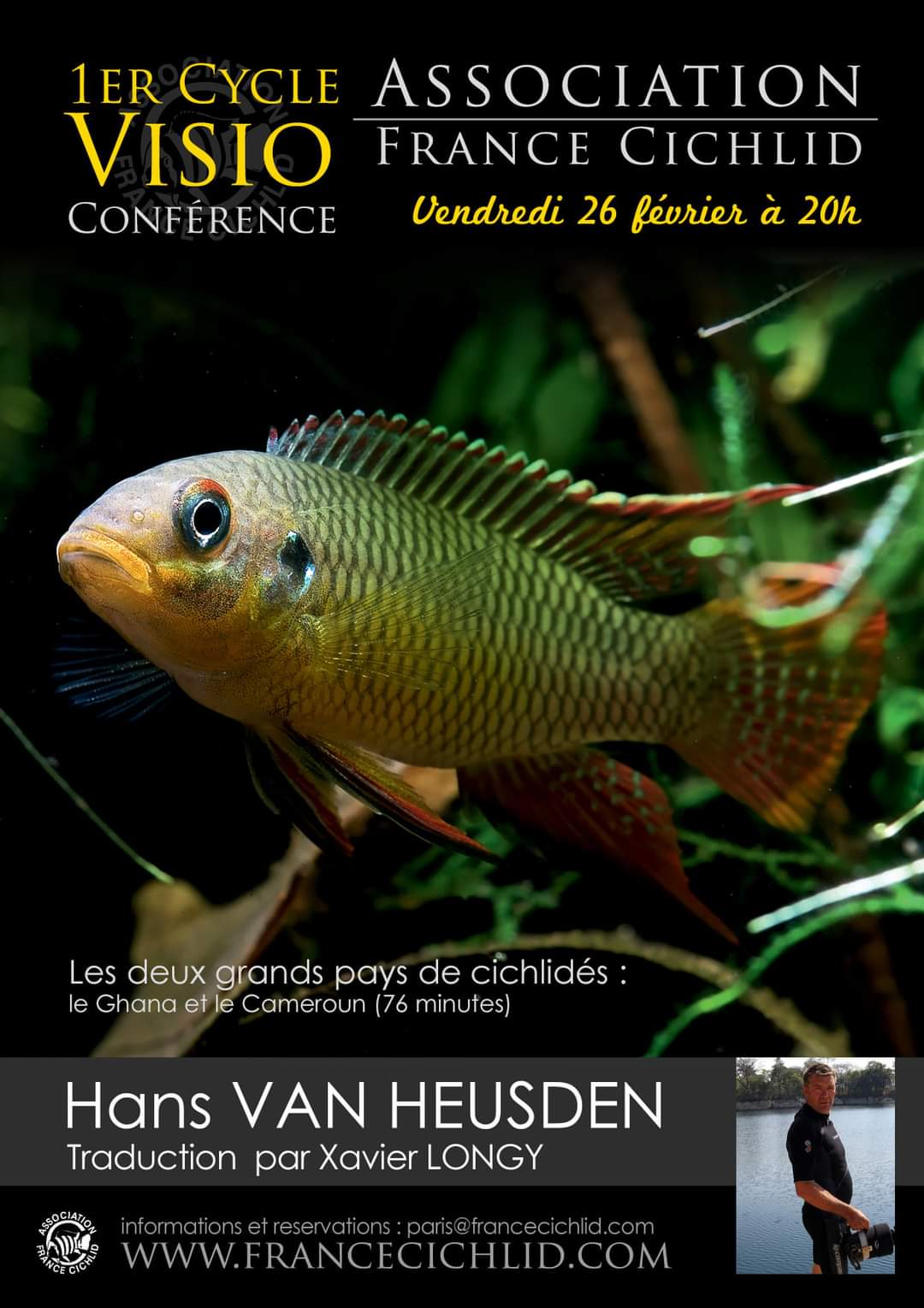 Comme convenu lors de l’assemblée générale, Nous allons proposer aux adhérents un cycle de conférences sur Zoom. La première aura lieu le 29 janvier et portera sur deux thèmes : Boulengerochromis microlepis et Amatitlania nanolutea par Hans van Heusden. Comme pour l’assemblée ces conférences seront réservées aux adhérents et il vous suffit de vous rapprocher de votre responsable de région (Ou Damien Dubray /Stéphane Audigou si vous n’avez pas de réponse assez rapidement) pour obtenir le lien de la conférence…. Deux autres sessions par le même conférencier mais sur d’autres sujets sont prévues en février et mars. Merci.