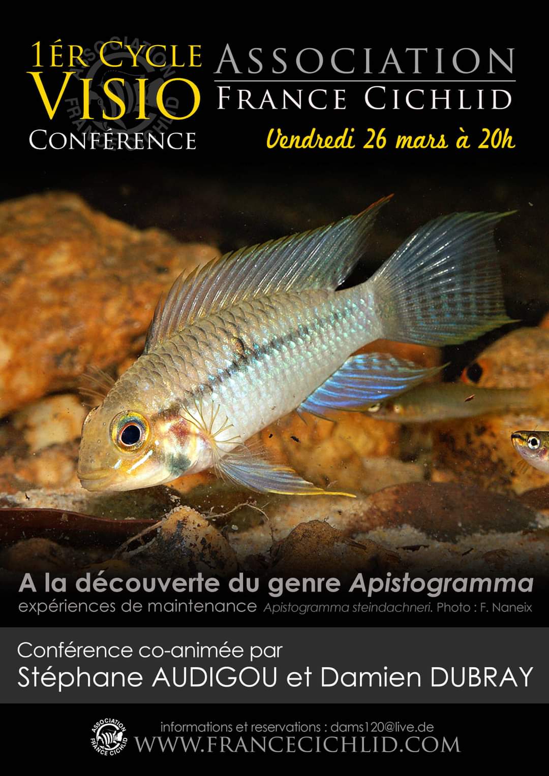 Ces conférences ne seront pas réservées aux adhérents, elles seront ouvertes à tous, il vous suffit de vous rapprocher de Damien Dubray à cette adresse " responsableregions@francecichlid.com " pour obtenir le lien de la conférence. D'autres sessions vous seront proposées.